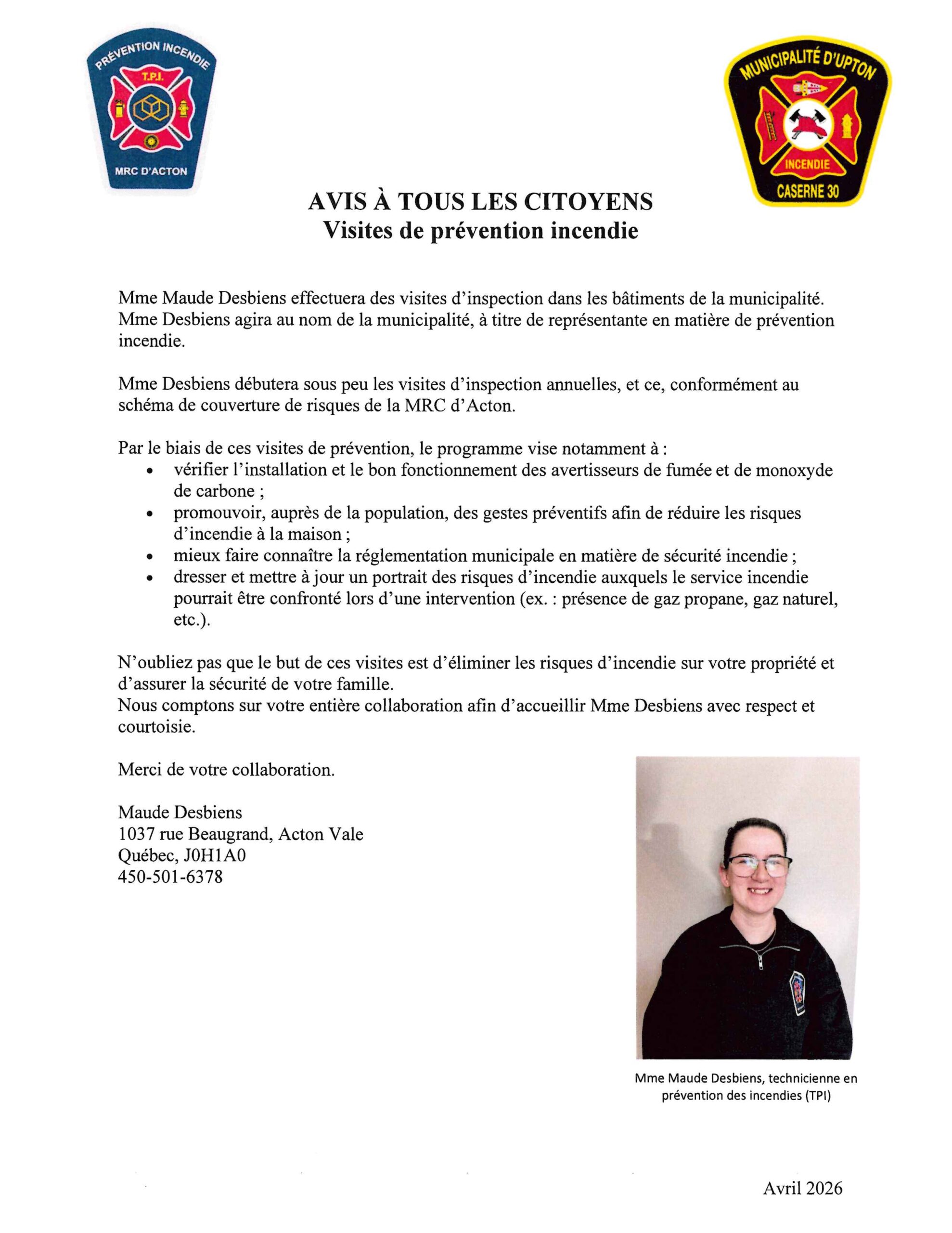****AVIS DE LA MUNICIPALITÉ D'UPTON**** [...]