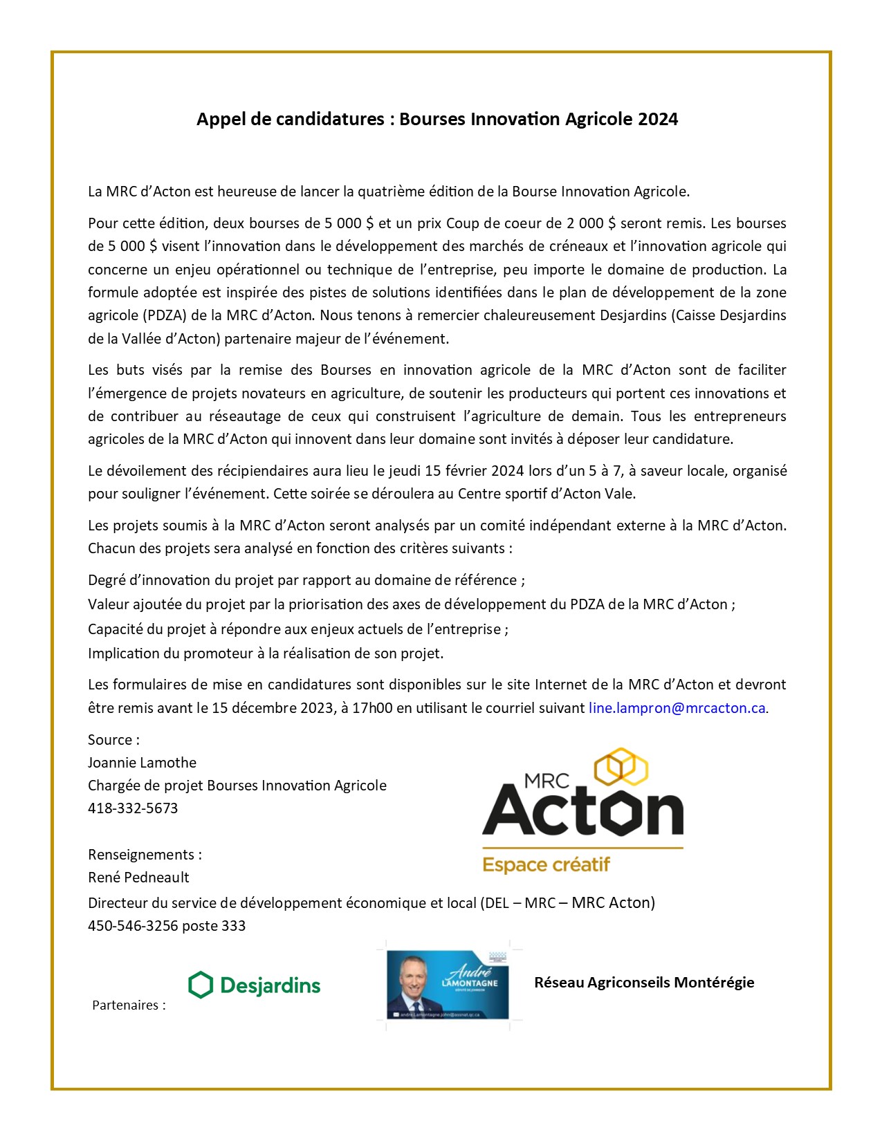 Appel de candidatures: Bourses Innovation Agricole 2024 Upton2023-11-13T13:29:31-05:00 Partagez sur les réseaux sociaux FacebookXLinkedInPinterestEmail