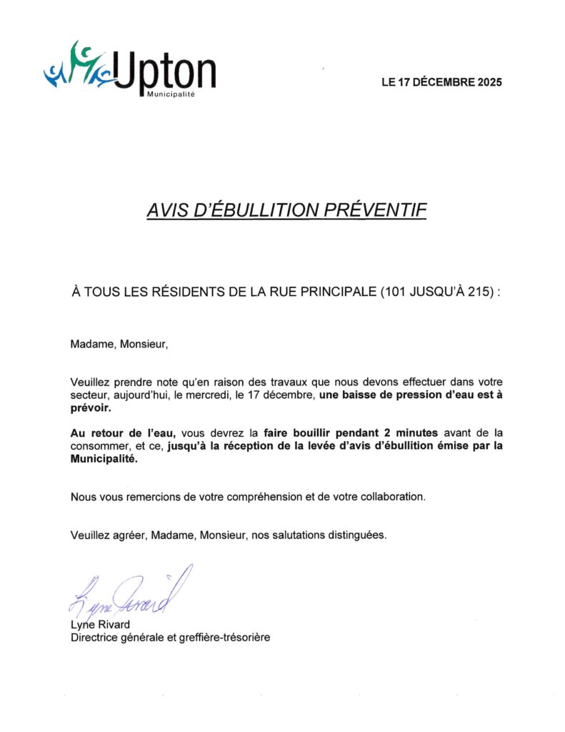 AVIS D’ÉBULLITION PRÉVENTIF – 101 À 215, RUE PRINCIPALE) Émilie Hébert2025-12-17T11:20:36-05:00 Partagez sur les réseaux sociaux FacebookXLinkedInPinterestEmail