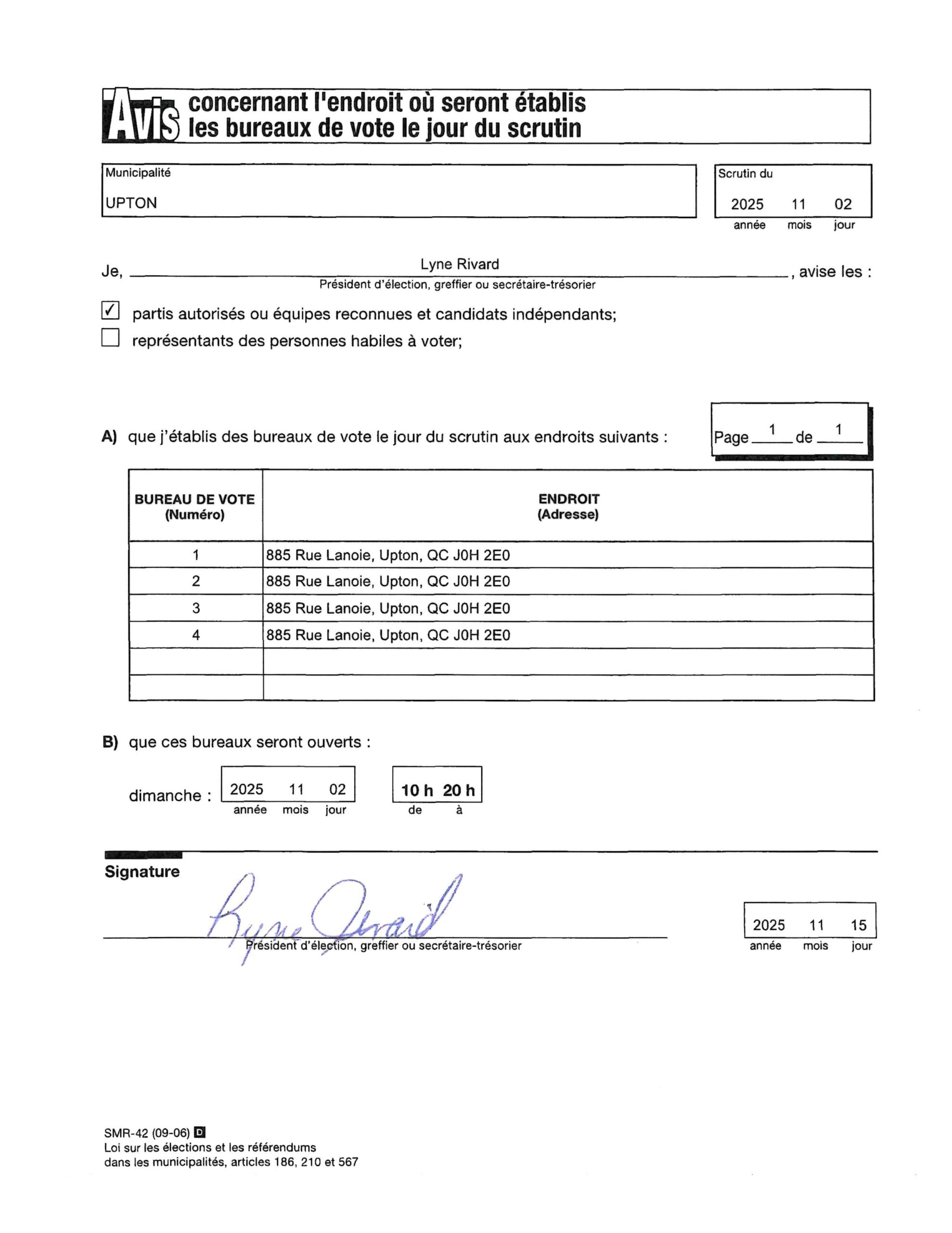 Avis public – endroit de bureau de vote jour du scrutin Upton2025-10-16T16:25:50-04:00 Partagez sur les réseaux sociaux FacebookXLinkedInPinterestEmail
