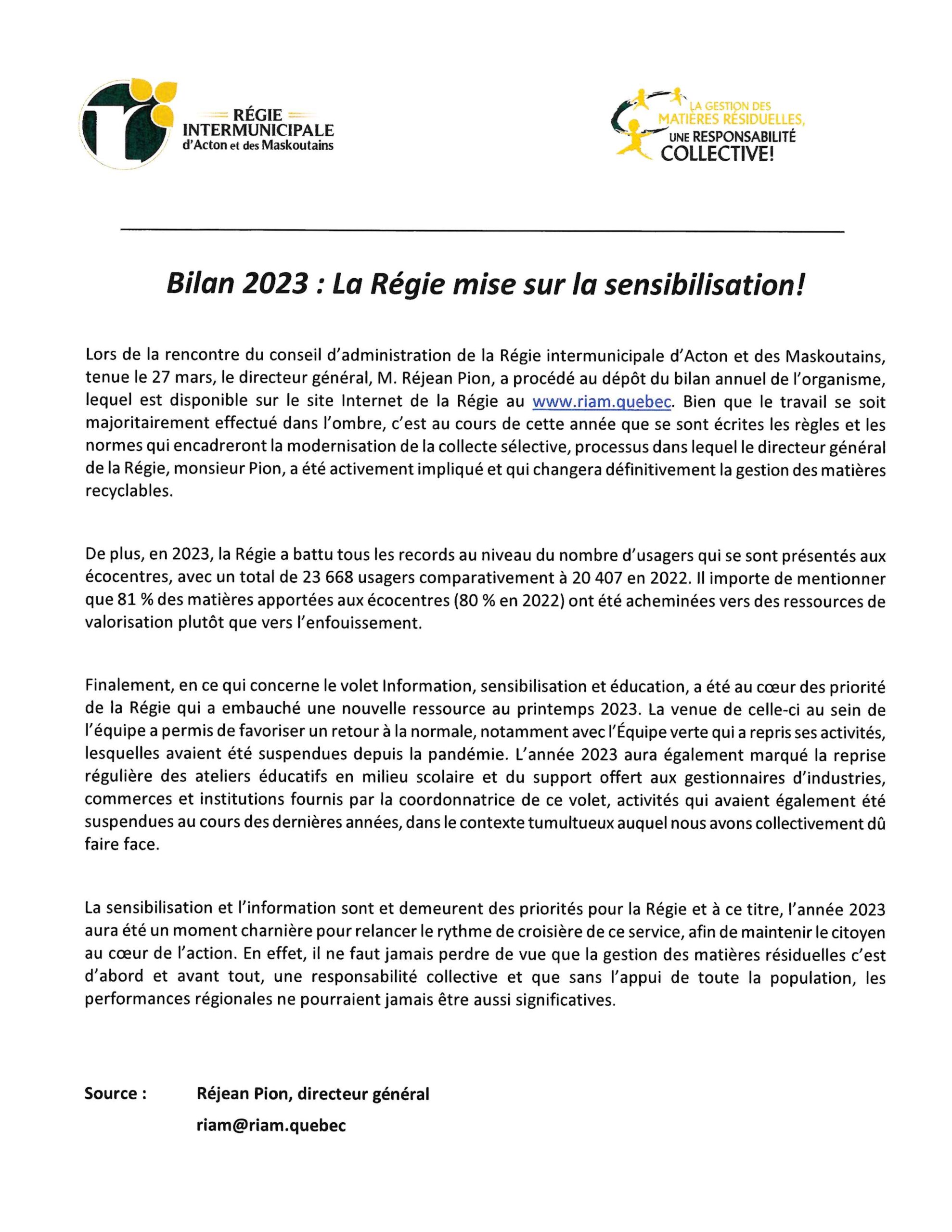 BILAN 2023: LA RÉGIE MISE SUR LA SENSIBILISATION! Upton2024-04-08T09:25:41-04:00 Partagez sur les réseaux sociaux FacebookXLinkedInPinterestEmail