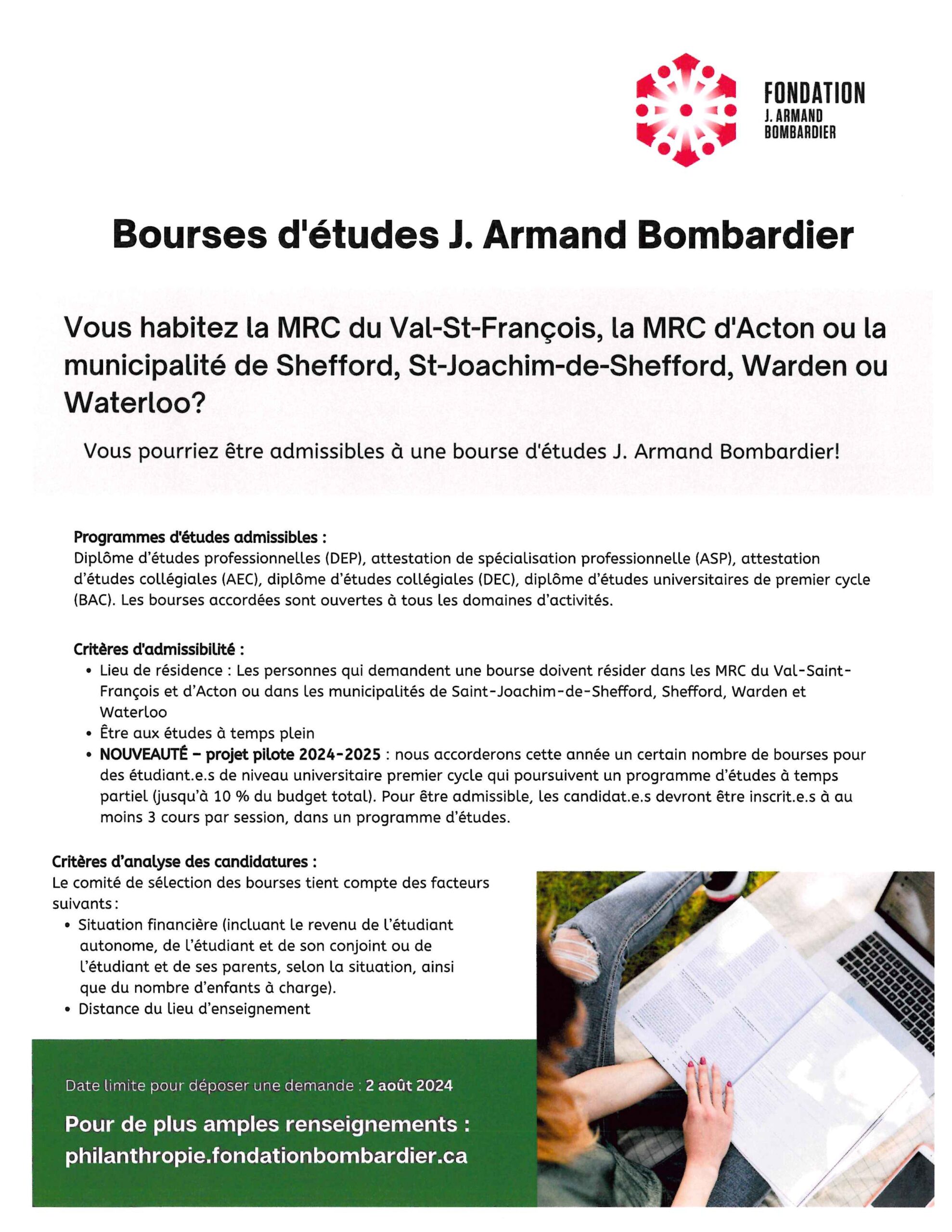 Bourse d’études J. Armand Bombardier Upton2024-06-03T11:15:27-04:00 Partagez sur les réseaux sociaux FacebookXLinkedInPinterestEmail