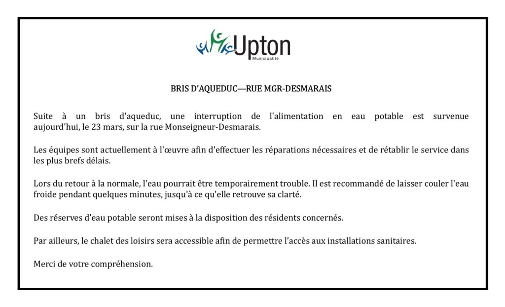 BRIS D’AQUEDUC – RUE MGR-DESMARAIS Émilie Hébert2026-03-23T16:28:15-04:00 Partagez sur les réseaux sociaux FacebookXLinkedInPinterestEmail