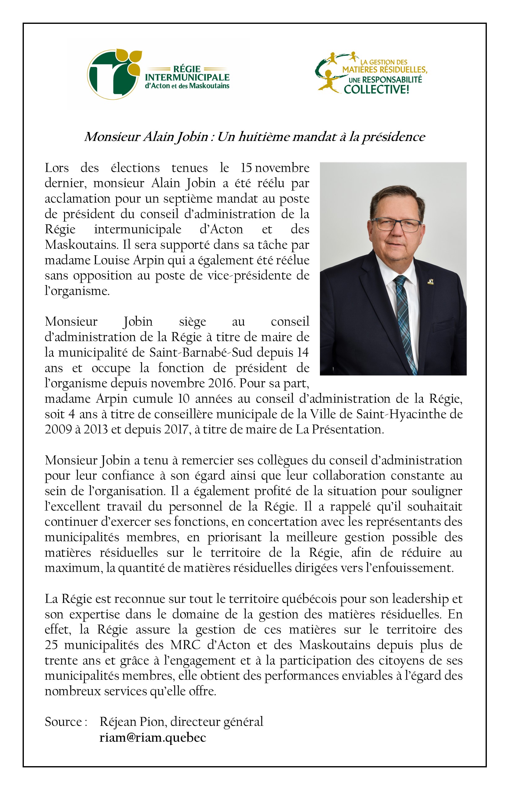 Monsieur Alain Jobin: Un huitième mandat à la présidence Upton2024-01-08T10:12:33-05:00 Partagez sur les réseaux sociaux FacebookXLinkedInPinterestEmail