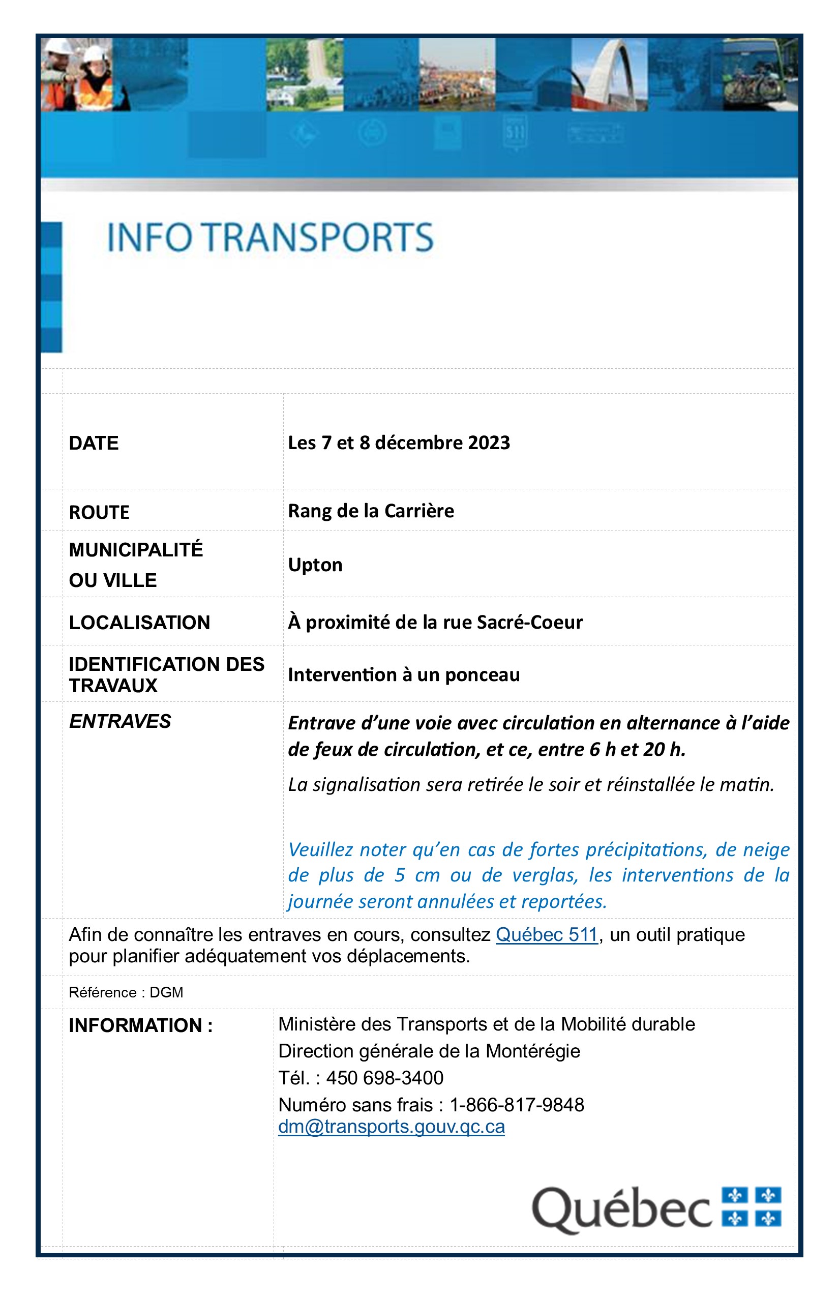 MTQ – TRAVAUX RANG DE LA CARRIÈRE (7 & 8 DÉCEMBRE) Upton2023-12-07T09:06:52-05:00 Partagez sur les réseaux sociaux FacebookXLinkedInPinterestEmail