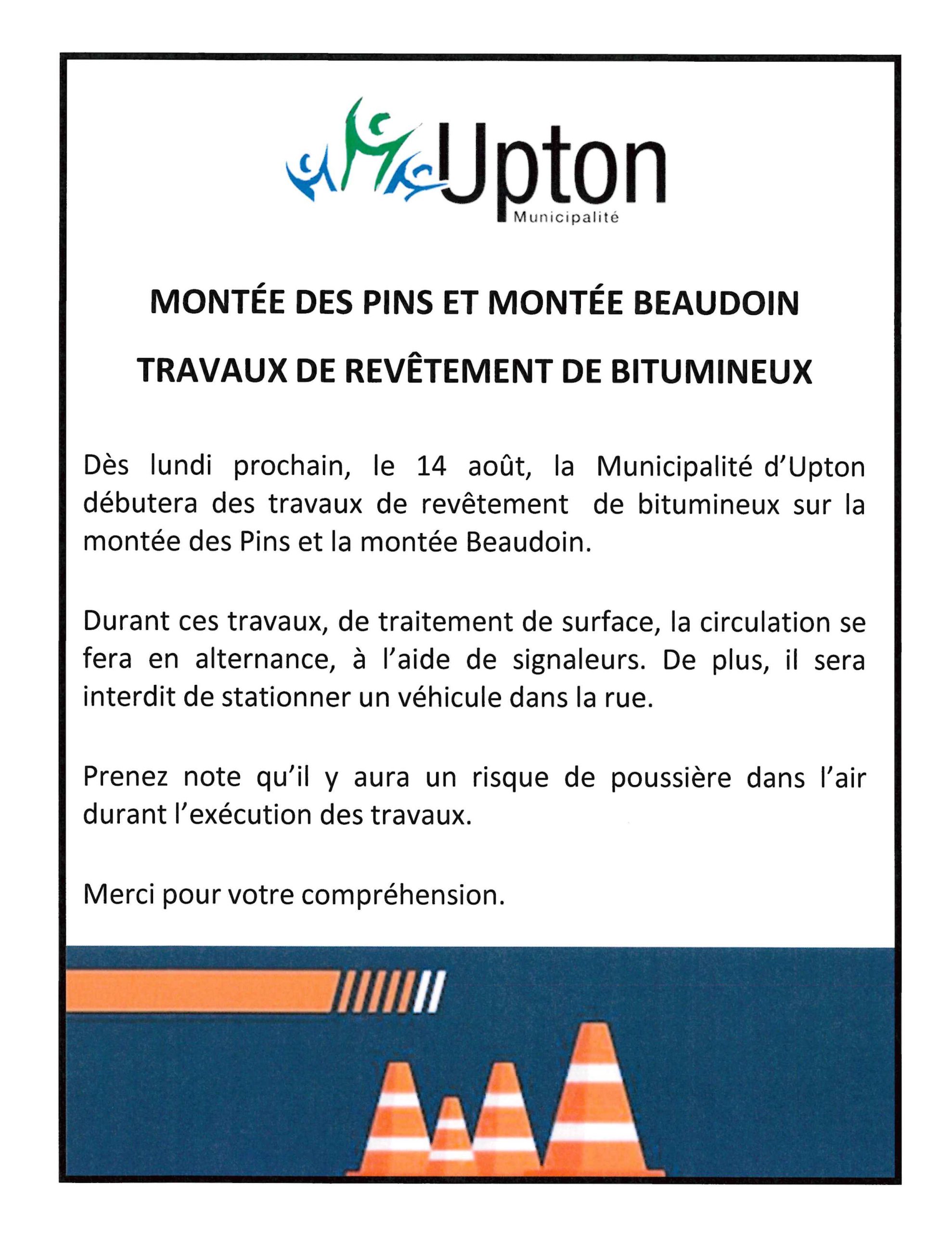 Travaux de revêtement de bitumineux – montée des Pins et montée Beaudoin Upton2023-08-02T16:01:25-04:00 Partagez sur les réseaux sociaux FacebookXLinkedInPinterestEmail