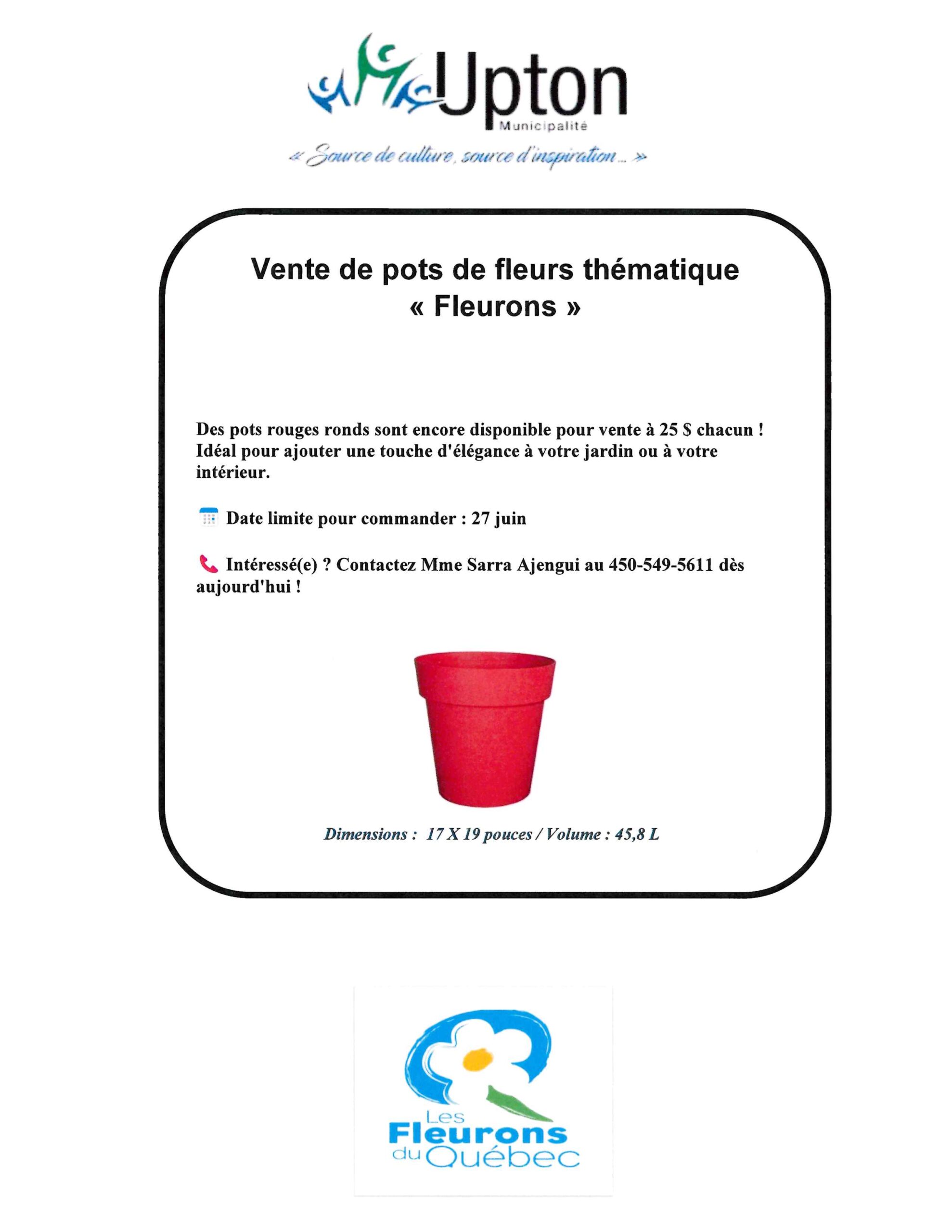 Vente de pots de fleurs thématique « Fleurons » Upton2024-06-03T10:11:09-04:00 Partagez sur les réseaux sociaux FacebookXLinkedInPinterestEmail